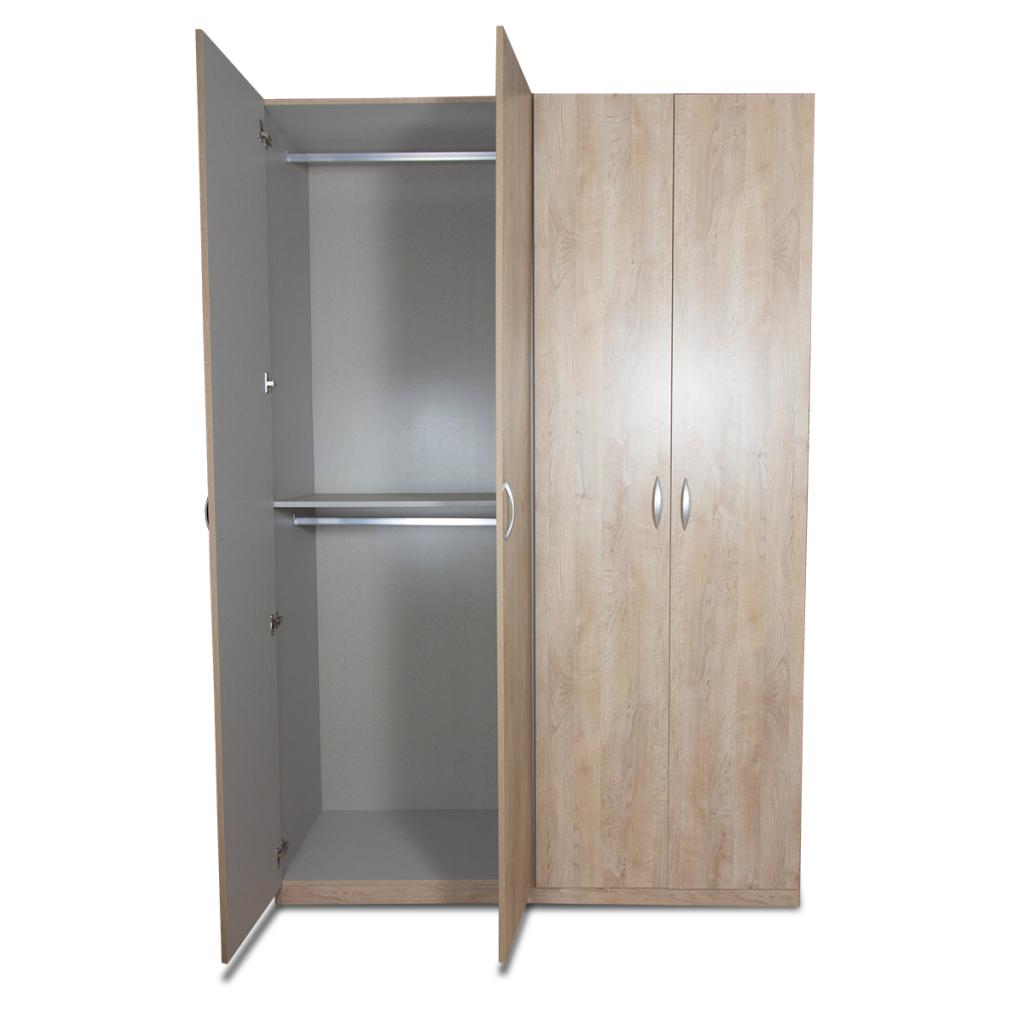 Armario de 4 puertas abatibles gran capacidad, con un acabado en color roble bodega de 160 cm. de ancho. Interiores acabados en textil. Incluye 4 barras y 2 estantes.