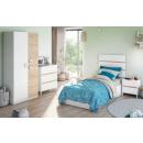 Rebajas Oferta Novedad Armario Juvenil Ref: 015400000519 194,99 € Armario de 3 puertas con barra de colgar y tres estantes en su interior. Composición: Tablero de partículas, tablero de fibras, lámina de papel, borde de plástico. Disponibilidad: Color Blanco / Roble Tamaño Armario. 90x200x52 cm Ancho x Alto x Fondo Cantidad