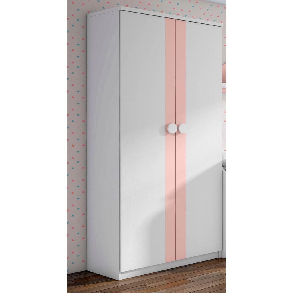 Armario juvenil de 2 puertas blanco y rosa