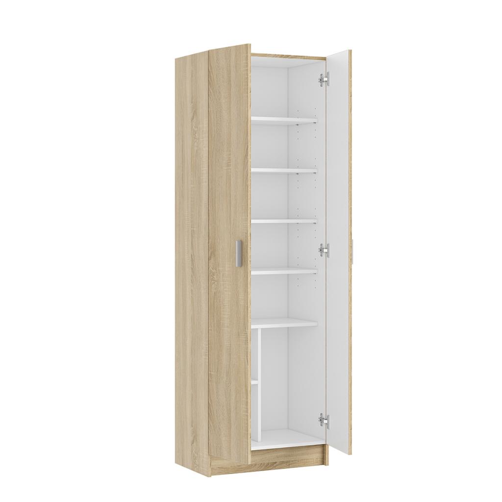 Rebajas Oferta Novedad Armario multiusos con 2 puertas en color roble canadian Ref: 015400000441 94,99 € Armario multiusos con 2 puertas y 7 estantes con acabado en roble canadian y el interior en color blanco.Composición: Tablero de partículas, tablero de fibras, lámina de papel, borde de plástico Disponibilidad: Color Roble Canadian Tamaño 59x180x37 Cms Ancho x Alto x Fondo Cantidad