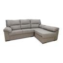 Sofá de 3 plazas con chaiselongue reversible en color cemento. Amplio sofá para disfrutar con toda la familia. (Situación del chaiselongue mirando de frente).