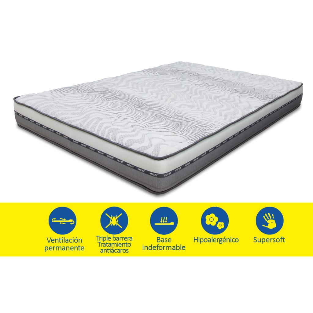 Colchón anatómico, atérmico y transpirable, impidiendo así la aparición de ácaros y hongos. Núcleo HR y cara ADAP FOAM de suave acogida. Acolchado supersoft tacto suave. Tejido Strech certificado según el Standard 100 de Oeko-Tex. Embalaje enrollado.