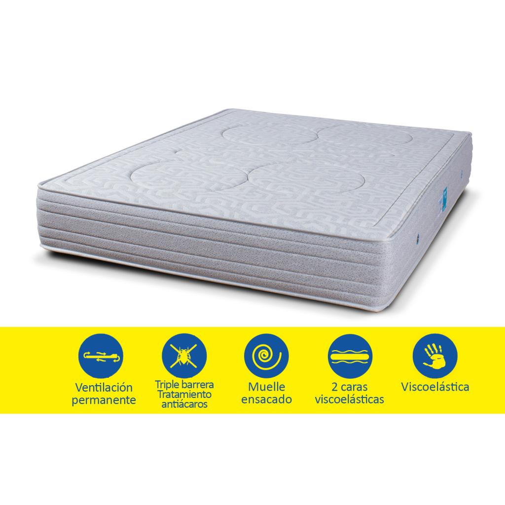 Colchón muelle ensacado superior con viscoelástica doble cara. Anatómico y atérmico.