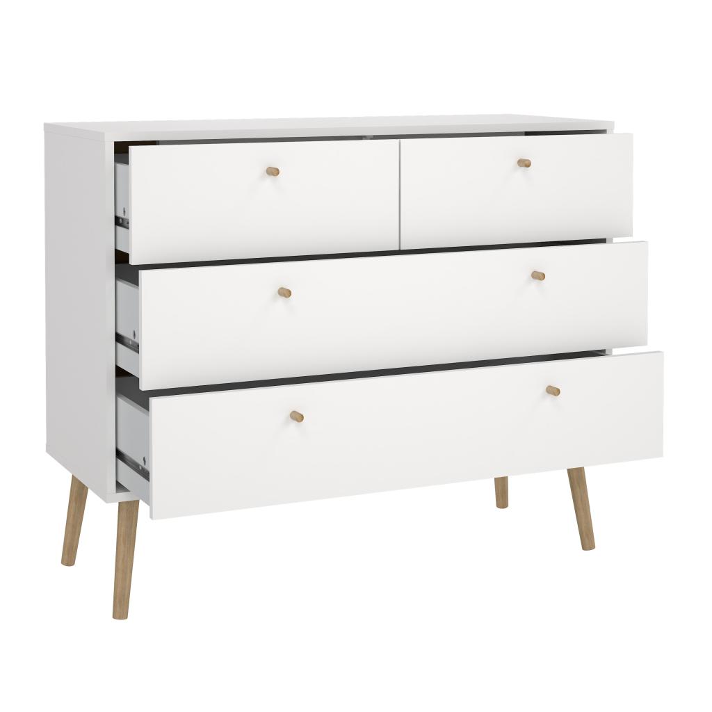Se adapta perfectamente a cualquier decoración contemporánea y minimalista, añadiendo un toque de sofisticación a tu habitación. Con cuatro cajones, ofrece un amplio espacio de almacenamiento.