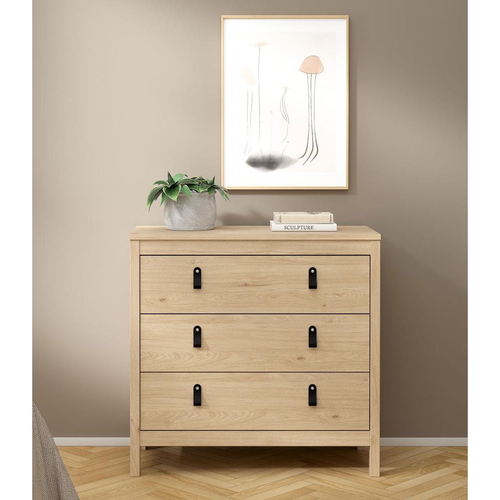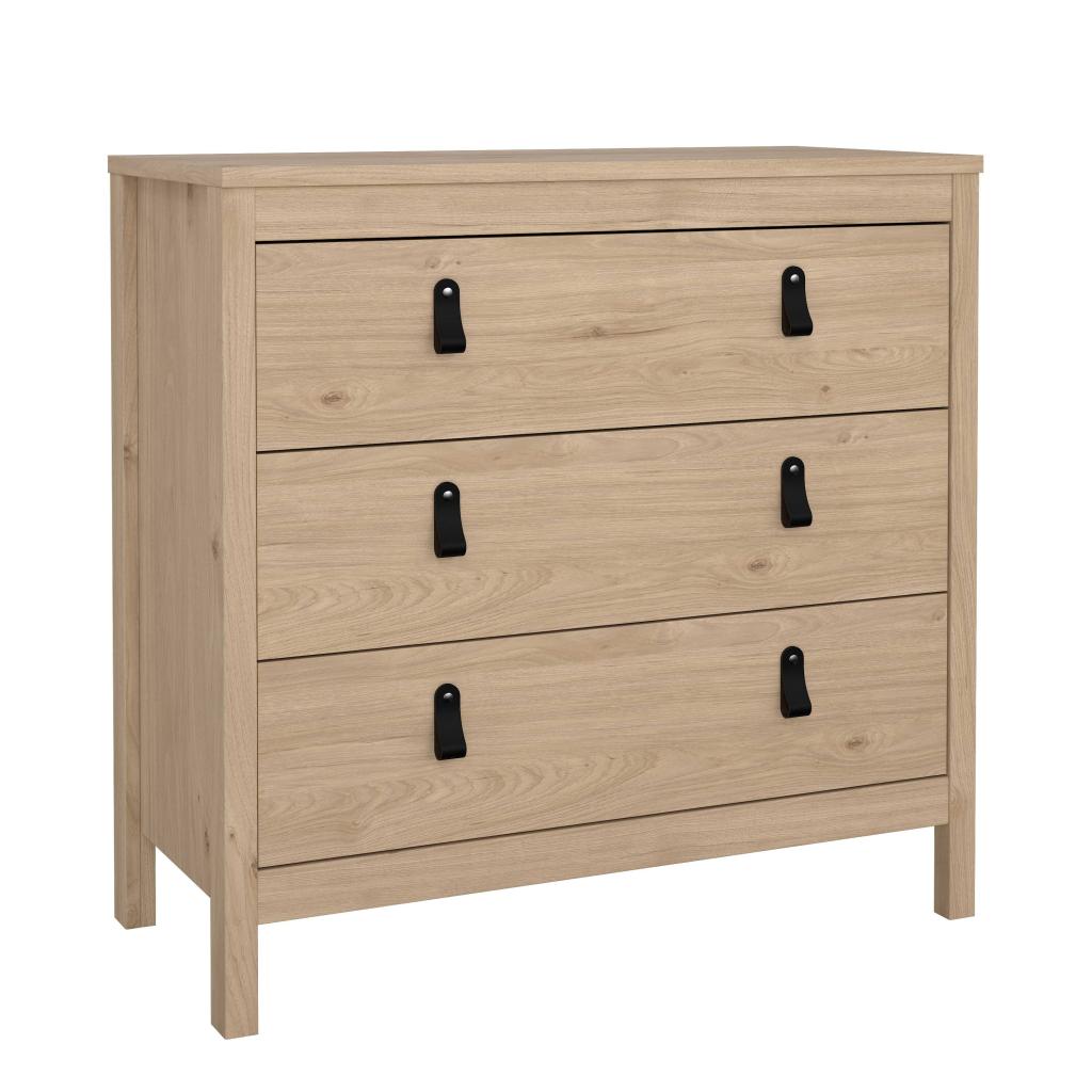 Elegante y se adapta perfectamente a cualquier decoración contemporánea. Cuenta con tres cajones para guardar cosas. Se incluyen dos tiradores, uno de cuero y otro de pomo, para ajustar el aspecto.