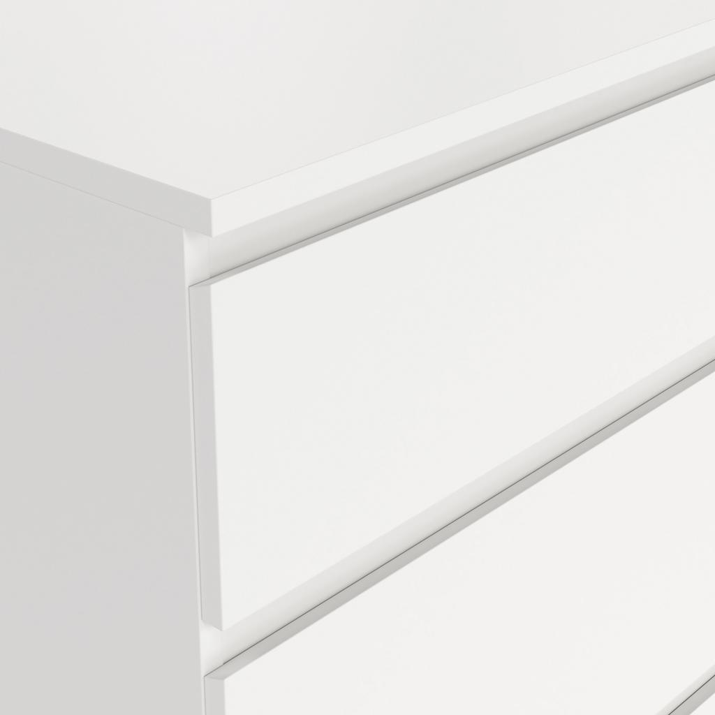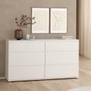 La cómoda doble Nova ofrece un almacenamiento minimalista y funcional, con seis amplios cajones y deslizadores de acero con rodamientos de bolas para facilitar su uso. Su diseño sin tiradores le confiere una estética elegante y moderna, realzando la belleza de la simplicidad.