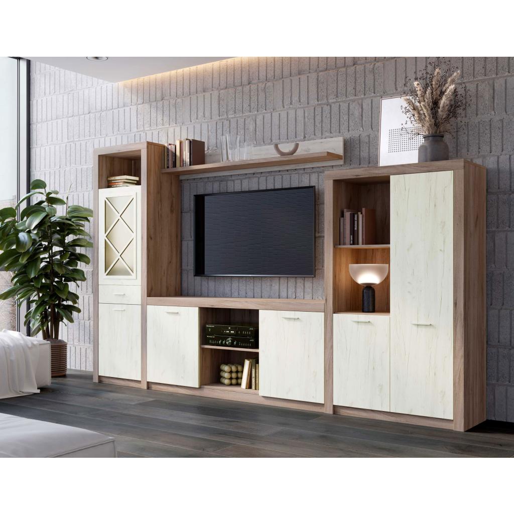 Rebajas Oferta Novedad Composición Ref: 206500000451 499,99 € Composición de estilo moderno formado por vitrina, mesa tv, bodeguero y estante. Cuenta con gran capacidad en su interior.Composición: Tablero de partículas, tablero de fibras, lámina de papel, borde de plástico, vidrio templado. Disponibilidad: Color Roble / Nordik Tamaño Vitrina 60x206x40 cm Mesa Tv 135x73x40 cm Bodeguero 90x135x40 cm Estante 135x20x21 cm Ancho x Alto x Fondo Cantidad