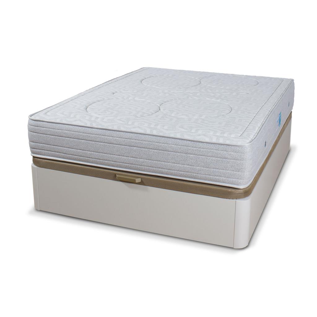 Base tapizada en tejido 3D color beige que asegura la transpirabilidad y circulación del aire. Estructura construida en hierro, reforzada para evitar dobleces. Tablero de partículas compactado de gran resistencia con perforaciones circulares para permitir la transpirabilidad del colchón.