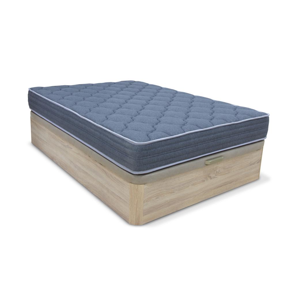 Canapé acabado en roble con esquinas redondeadas de gran capacidad acabado en madera con base tapizada de altura total 35 cm.Base tapizada en tejido 3D color beige que asegura la transpirabilidad y circulación del aire. Reforzada de gran resistencia, con tirador embutido Tablero de partículas compactado con perforaciones circulares para permitir la transpirabilidad del colchón.Cajón con patas de madera de gran capacidad acabado madera de color cambrian de 29 cm de altura.Colchón con núcleo Eliocel poliuretano inderformable de gran elasticidad. Alcochado superior y fibra. Tejido Strech certificado según el Standard 100 de Oeko-Tex. La altura del colchón es de 21 cm aproximadamente.