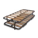 Conjunto canguro modelo 100. Compuesto por somier superior metálico con lamas de madera y patas incluidas y somier inferior de iguales características y patas plegables. Las lamas de madera aportan adaptabilidad y transpirabilidad a tu colchón.