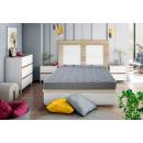 Dormitorio completo - Blanco / Roble. Canapé Blanco, Cabecero 160x77x3 cm Mesitas 50x50x35 cm Cómoda 79x79x41 cm Colchón 135x190x21 cm Canapé 135x190x35 cm Ancho x Alto x Fondo