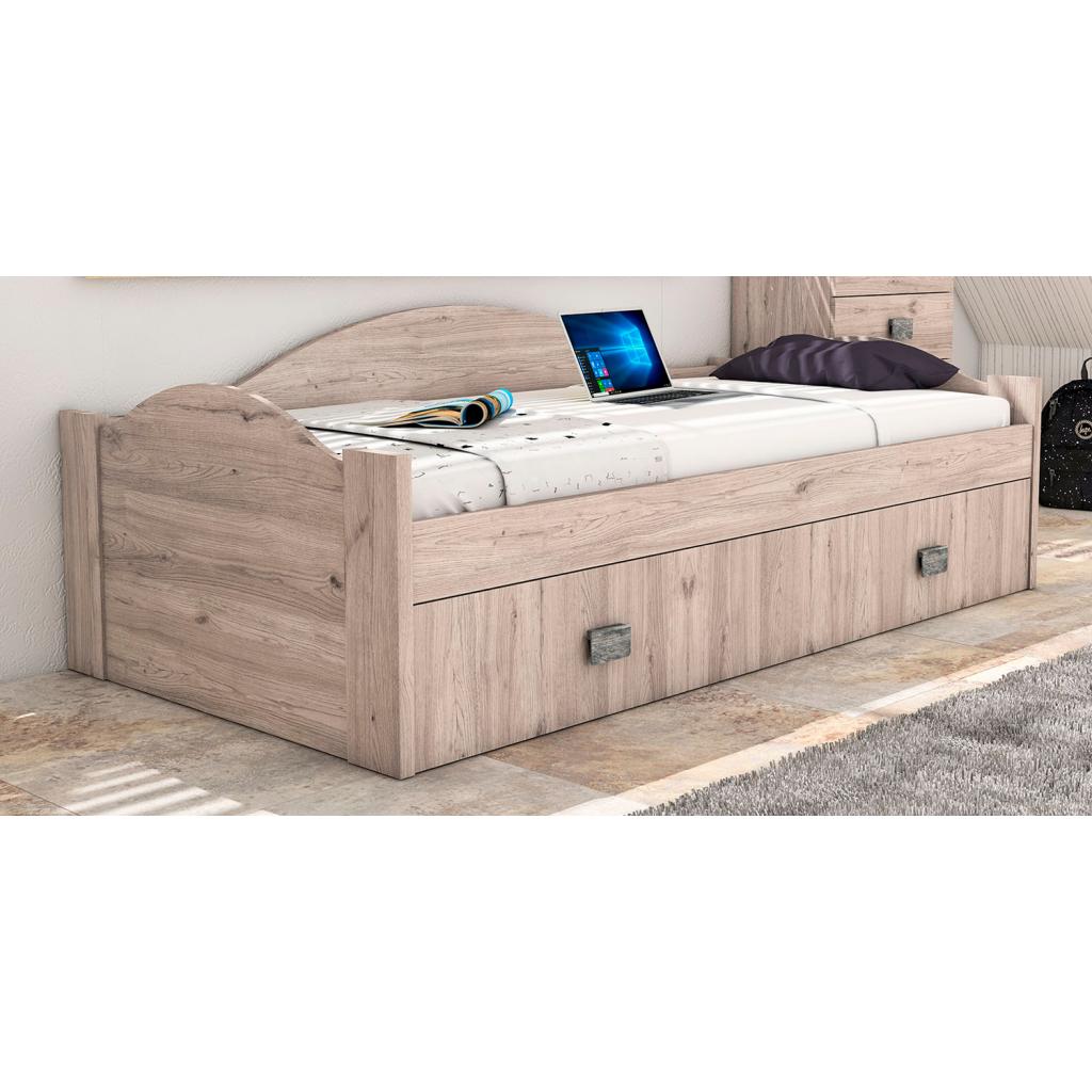 Dormitorio juvenil con cama nido en color roble salerno