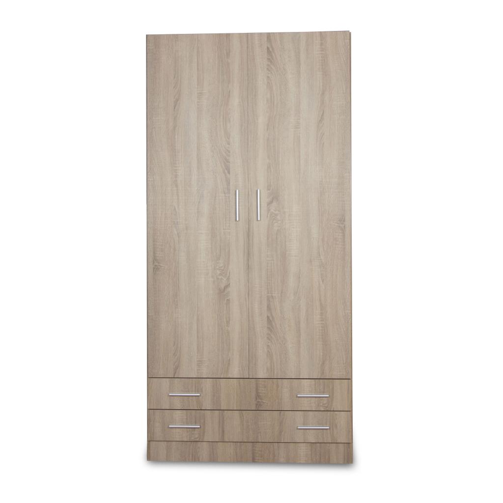 Composición: Tablero de partículas, tablero de fibras, lámina de papel, borde de plástico.
