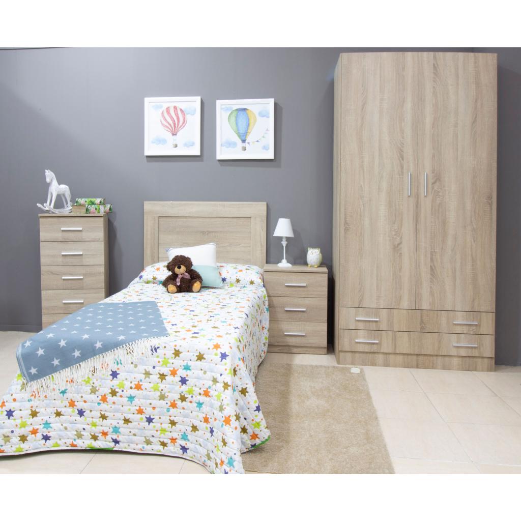 Este dormitorio juvenil opta por un color neutro, aportando luminosidad. Este color roble cambrian, convierte el dormitorio en un lugar relajante. Son muebles muy de moda en la actualidad con líneas rectas que dan sensación de un aspecto moderno y funcional. Puede añadir el cabecero de 90 o de 105 cm, también dispone de mesa de estudio, sinfonier, armario ... Puede formar la habitación según las necesidades