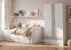 Dormitorio juvenil completo en color roble. Llamativa combinación unisex y muy versátil. Compuesto por cama compacta, estante y armario. Cama superior de 90*190 y cama inferior extraible 90*180. No incluye somier ni colchón