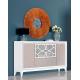 Aparador con un elegante diseño y estilo neoclásico en color blanco. Dispone de 3 puertas y 3 cajones de gran capacidad. Incluye 3 estantes en su interior.