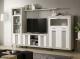 Elegante composición de salón formada por una vitrina, mesa TV, bodeguero con celosia y estante. Resalta por su elegancia y sencillez. Puede añadir el aparador a juego (opcional) 206500000190. Decorada con una línea decorativa en plata.