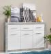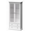 Vitrina de diseño elegante y estilo neoclásico en color blanco. Dispone de 2 puertas y 2 cajones de gran capacidad