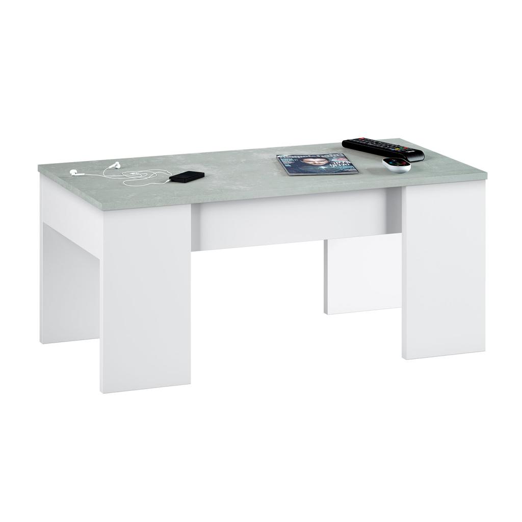 Rebajas Oferta Novedad Mesa de centro elevable en color blanco y gris cemento Ref: 015400000447 76,99 € Mesa de centro elevable con estructura en color blanco y tapa superior en gris cemento.Composición: Tablero de partículas, tablero de fibras, lámina de papel, borde de plástico. Disponibilidad: Color Blanco y gris cemento Tamaño 45x50x100 cm. Ancho x Alto x Largo Cantidad