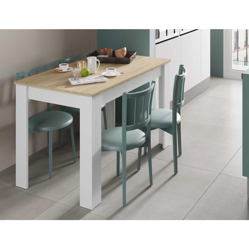 Mesa de comedor en blanco artik y roble canadian