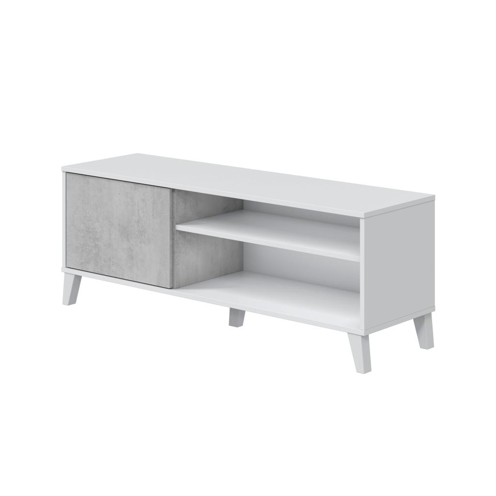 Rebajas Oferta Novedad Mesa Tv Ref: 015400000533 79,99 € Mueble TV con un estante y una puerta. Composición: Tablero de partículas, tablero de fibras, lámina de papel, borde de plástico. Disponibilidad: Color Blanco/ Cemento Tamaño 135x50x40 cm Ancho x Alto x Fondo Cantidad