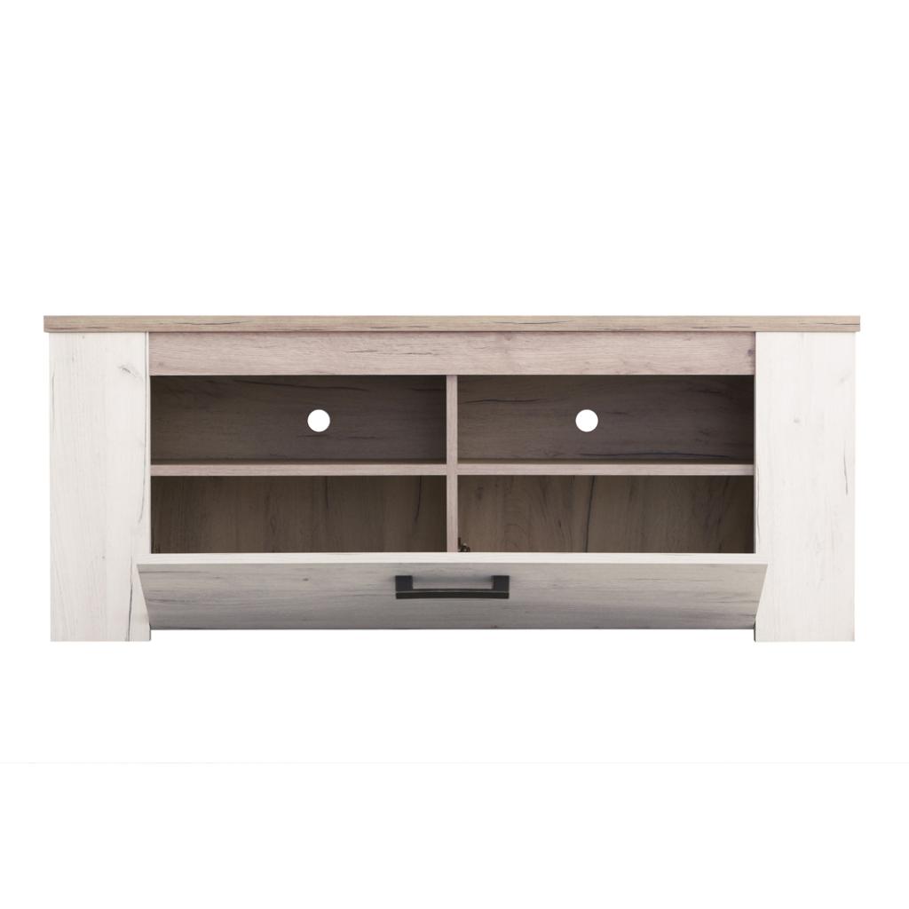 Mesa TV mod. Kent en blanco vintage - Blanco vintage y roble grisaceo, 122x49x43 cm Ancho x Alto x Fondo