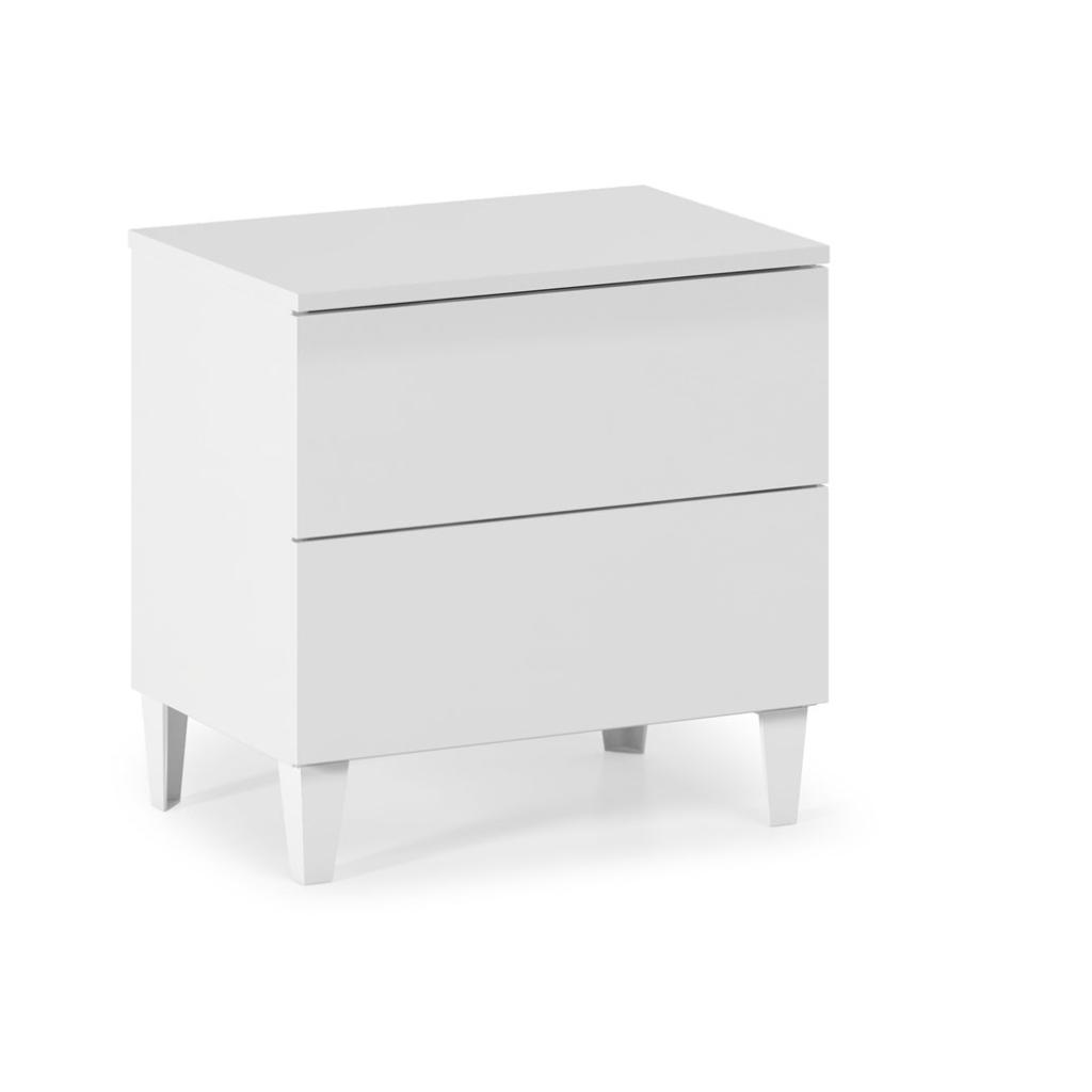 Mesita de dos cajones en blanco brillo