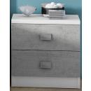 Rebajas Oferta Novedad Mesita de noche en color blanco poro y pozzolana Ref: 175500002161 69,99 € Moderna mesita de noche en color blanco poro y frentes en color pozzolana.Composición: Tablero de partículas, tablero de fibras, lámina de papel, borde de plástico. Disponibilidad: Color Blanco poro y pozzolana Tamaño Mesita. 50x50x35.5 cm. Ancho x Alto x Fondo Cantidad
