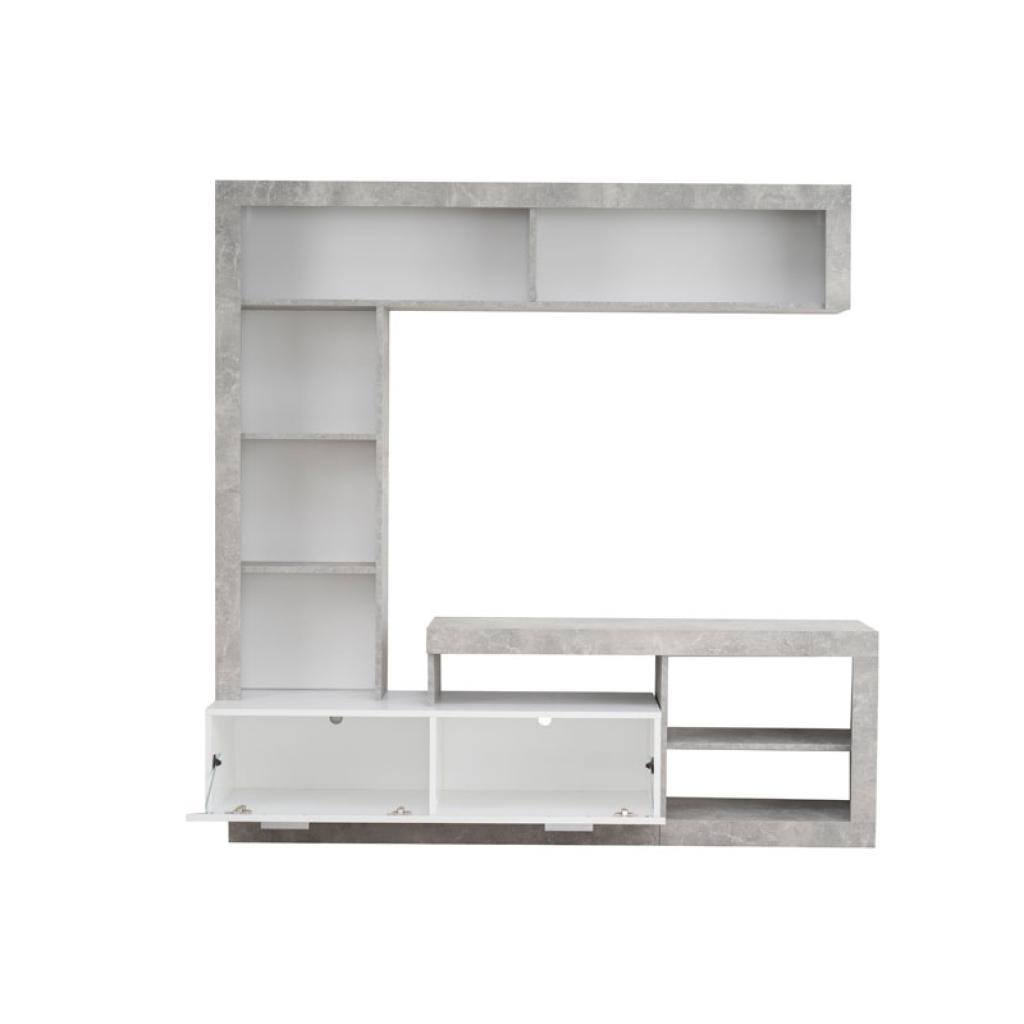 Moderno apilable de salón, destaca por su diseño y combinación de colores. La sección cerrada, mesa TV ubicado en el centro y estantes abiertos forman una unidad compacta para almacenar todos los artículos y equipos audiovisuales.