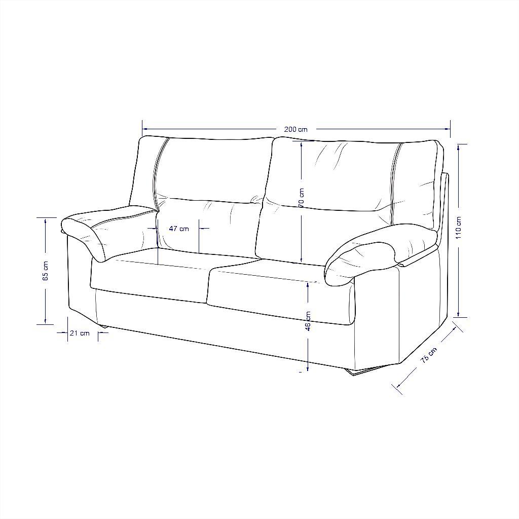 Sofá de línea moderna con patas metálicas. Tapizado en color gris cemento en tejidos de gran resistencia y fácil limpieza con costuras decorativas.