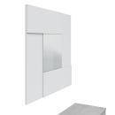 Composición: Tablero de partículas, tablero de fibras, lámina de papel, borde de plástico, vidrio templado