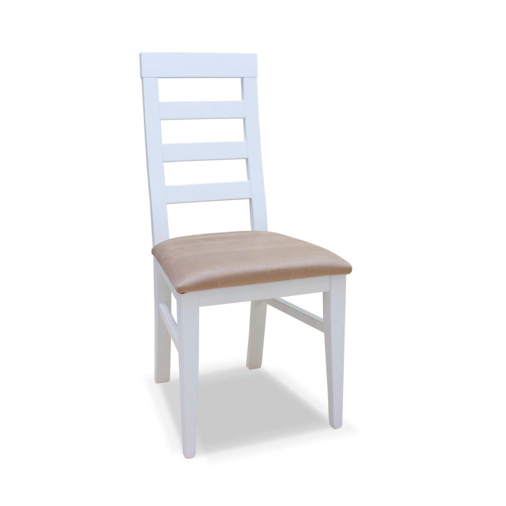 Rebajas Oferta Novedad Silla mod. Jerez en blanco, tapizado en beige Ref: Silla para salón o comedor en color blanco con espaldar clásico.Composición: Pino macizo, tinte, barniz acrílico incoloro, tablero de partículas, poliuretano, tejido 100% poliéster. Disponibilidad: