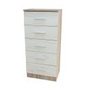 Rebajas Oferta Novedad Sinfonier Ref: 188700000079 109,99 € Sinfonier de 5 cajones en color nordik y roble. Tiradores en color aluminio.Composición: Tablero de partículas, tablero de fibras, lámina de papel, borde de plástico. Disponibilidad: Color Roble / Nordik Tamaño Sinfonier 46x103x35 cm Ancho x Alto x Fondo Cantidad