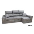Sofá 3 plazas con chaiselongue . Este modelo de sofá - chaiselongue, cuenta con asientos deslizantes y cabezales reclinables. Tela muy resistente al uso diario. (Situación del chaiselongue vista de frente).