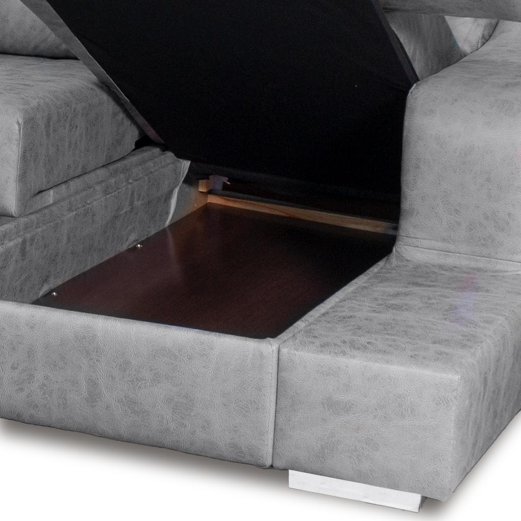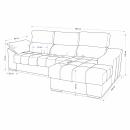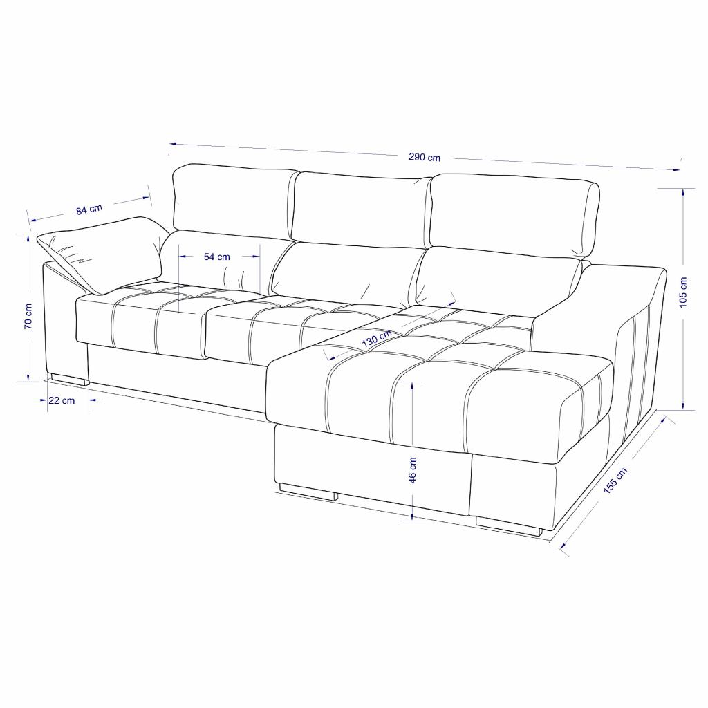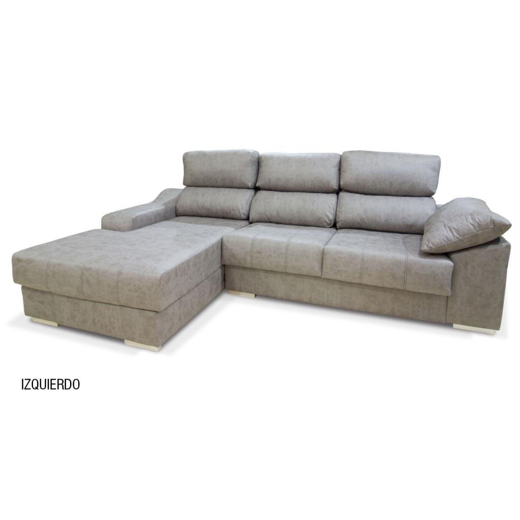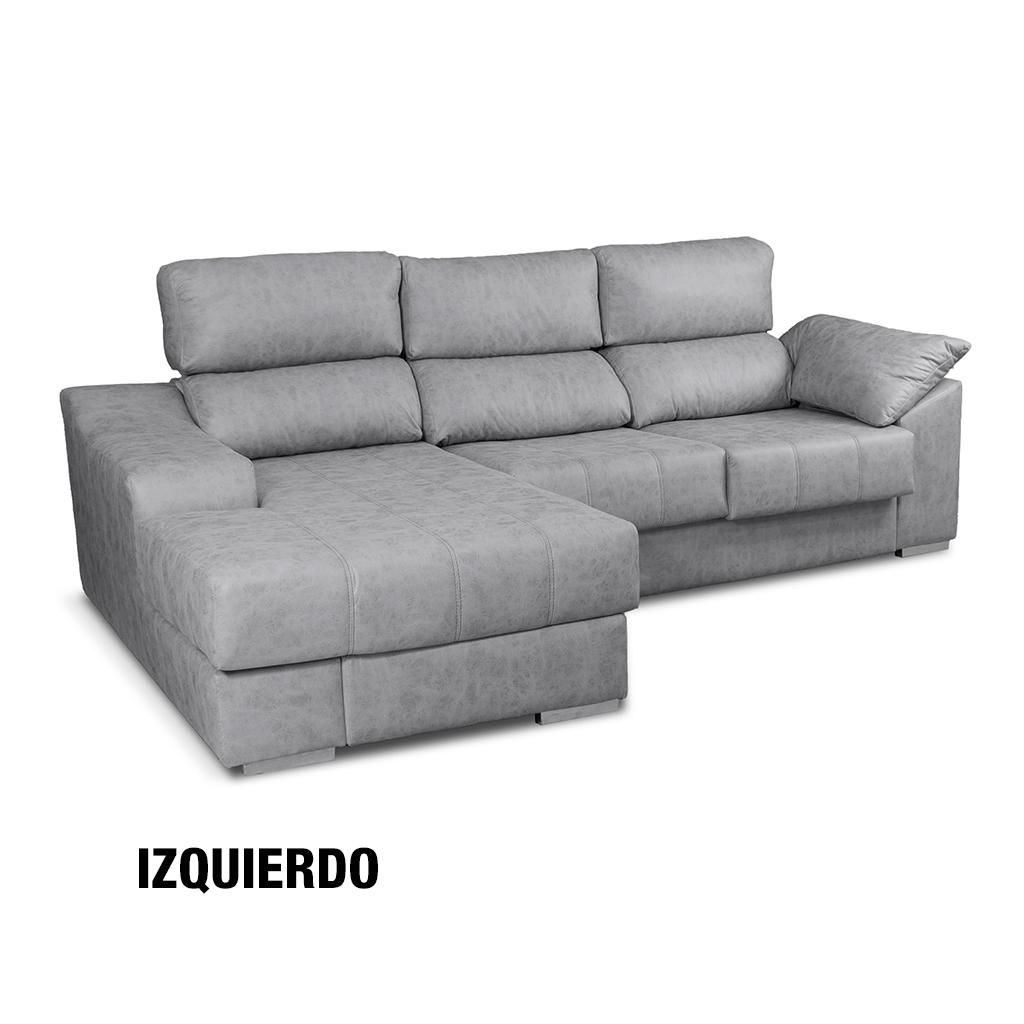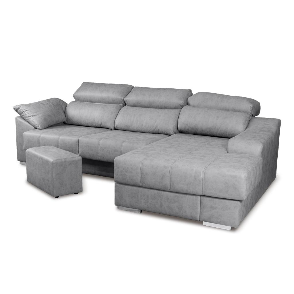 Sofá de 3 plazas con chaiselongue derecha o izquierda de gran confort. Moderno diseño con dobles costuras decorativas en tono gris. Resistente al uso diario.Dispone de asientos extraibles, cabezal abatible, 1 puf y arcón. (Situación del módulo chaiselongue mirando de frente).