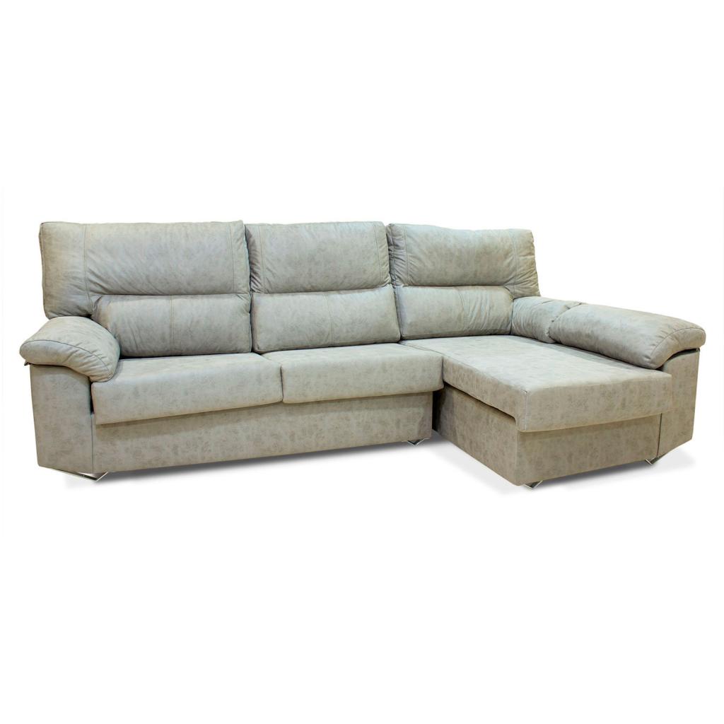 Sofá 3 plazas con chaiselongue reversible de gran confort. Tapizado en magnolia cemento, tejidos de gran calidad y de fácil mantenimiento. (Situación del módulo chaiselongue mirando de frente).
