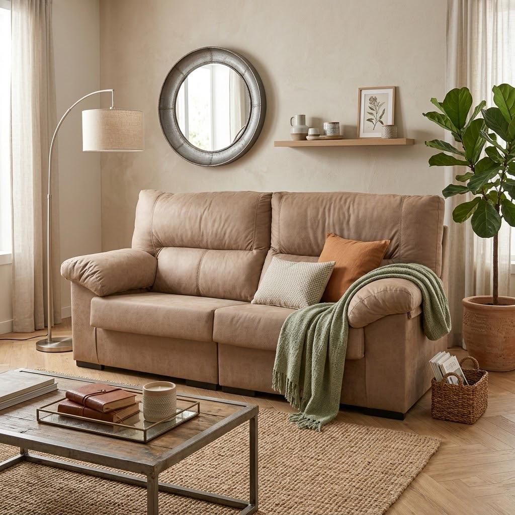 Destaca por su respaldo cómodo. Con sus 3 plazas, podréis disfrutar en familia de la televisión y de vuestros momentos de ocio. Fabricado con una tela resistente. Es un sofá que encaja en cualquier ambiente. Desenfundable.