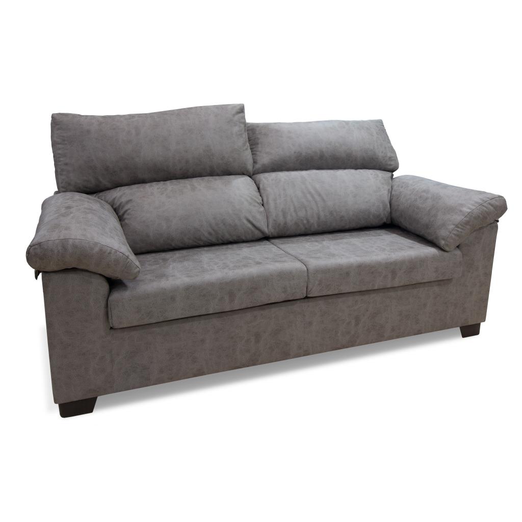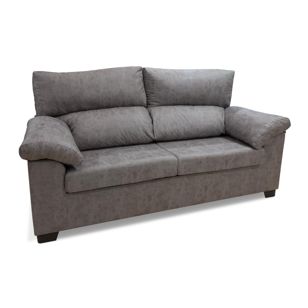 Sofá de 3 plazas tapizado en magnolia cemento, desenfundale y patas en color negro