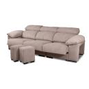 Sofá de 4 plazas de elegante diseño de gran confort y resistencia. Con cabezales reclinables y asientos extraibles. Incluye 2 pouffs.