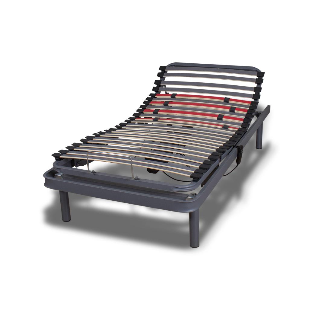 Somier eléctrico de lamas de madera de calidad superior con lechos de caucho que aportan comodidad y evitan ruidos. Cuenta con 5 planos de articulación e incluye patas