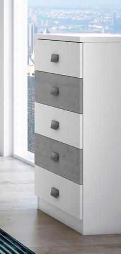 Ver detalles Sinfonier de 5 cajones en blanco poro y gris ártico 169,99 € Color Blanco poro y ártico Tamaño Sinfonier. 57,6x109x35,5Cms. Ancho x Alto x Fondo Cantidad Ver detalles