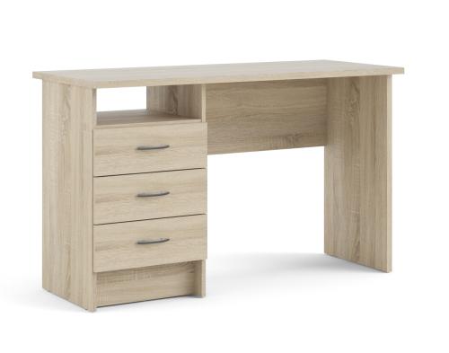 Ver detalles Mesa de escritorio, 3 cajones y acabado en roble 89,99 € Color Roble Tamaño 72,6 x 120,1 x 48,1 Cms. Alto x Ancho x Fondo Cantidad Ver detalles