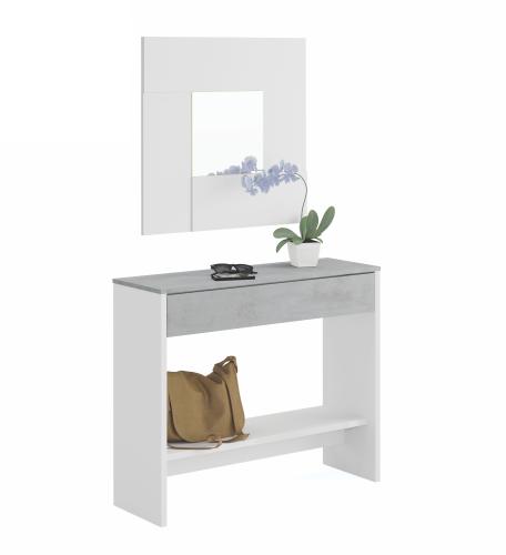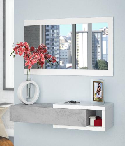 Ver detalles Moderno recibidor con espejo en color gris cemento y blanco 89,99 € Color Blanco y gris Tamaño 95x19x26 cm. Espejo 95x50x19 cm Ancho x Alto x Fondo Cantidad Ver detalles