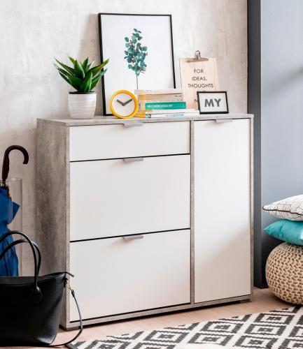 Ver detalles Zapatero en color gris y blanco 129,99 € Color Gris cemento y blanco Tamaño 105x94x33 cm Ancho x Alto x Fondo Cantidad Ver detalles