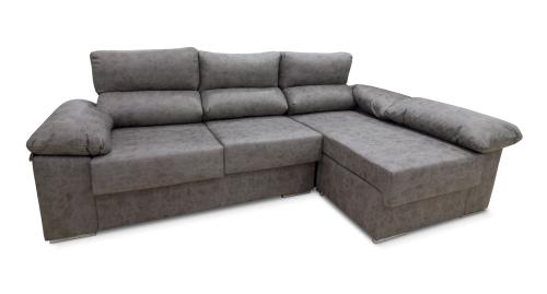 Sofá 3 plazas con chaiselongue en gris + arcón