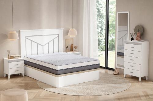 Novedad Ver detalles Dormitorio de Matrimonio 499,99 € Color Nordik claro/oscuro Tamaño Cabecero 160x135x3 cm Mesitas 55x56x35 cm Cómoda 100x76x45 cm Espejo 90x100x3 cm Ancho x Alto x Fondo Cantidad Ver detalles